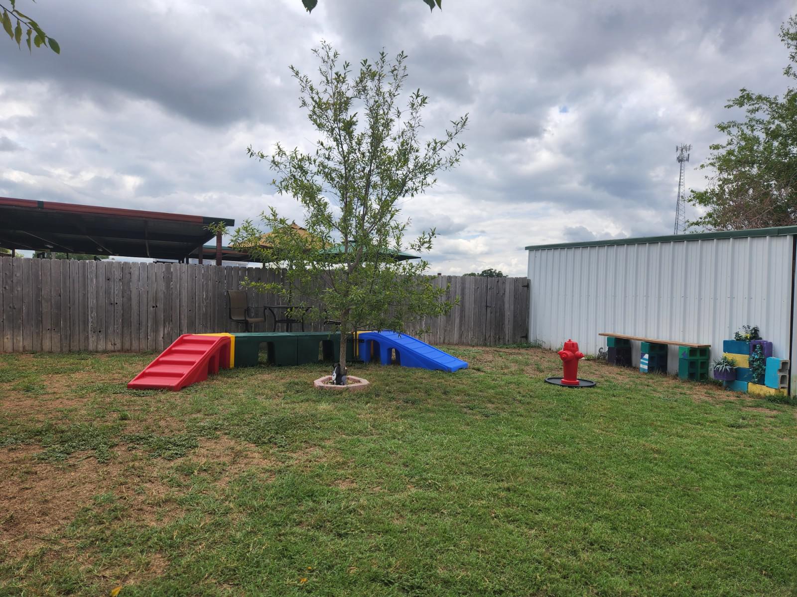 Dogs are treated to the indoor climate-controlled facility with a bright color scheme, a building infused with calming lavender scented plug-ins & soothing classical music of “Through A Dog’s Ear” is played to provide a relaxing atmosphere. With a Full day of daycare, Your pet will be provided up to 5 walks/day along with special “Play Time” where they get to enjoy our Outdoor Playground & interact with our staff on a One-on-One basis.