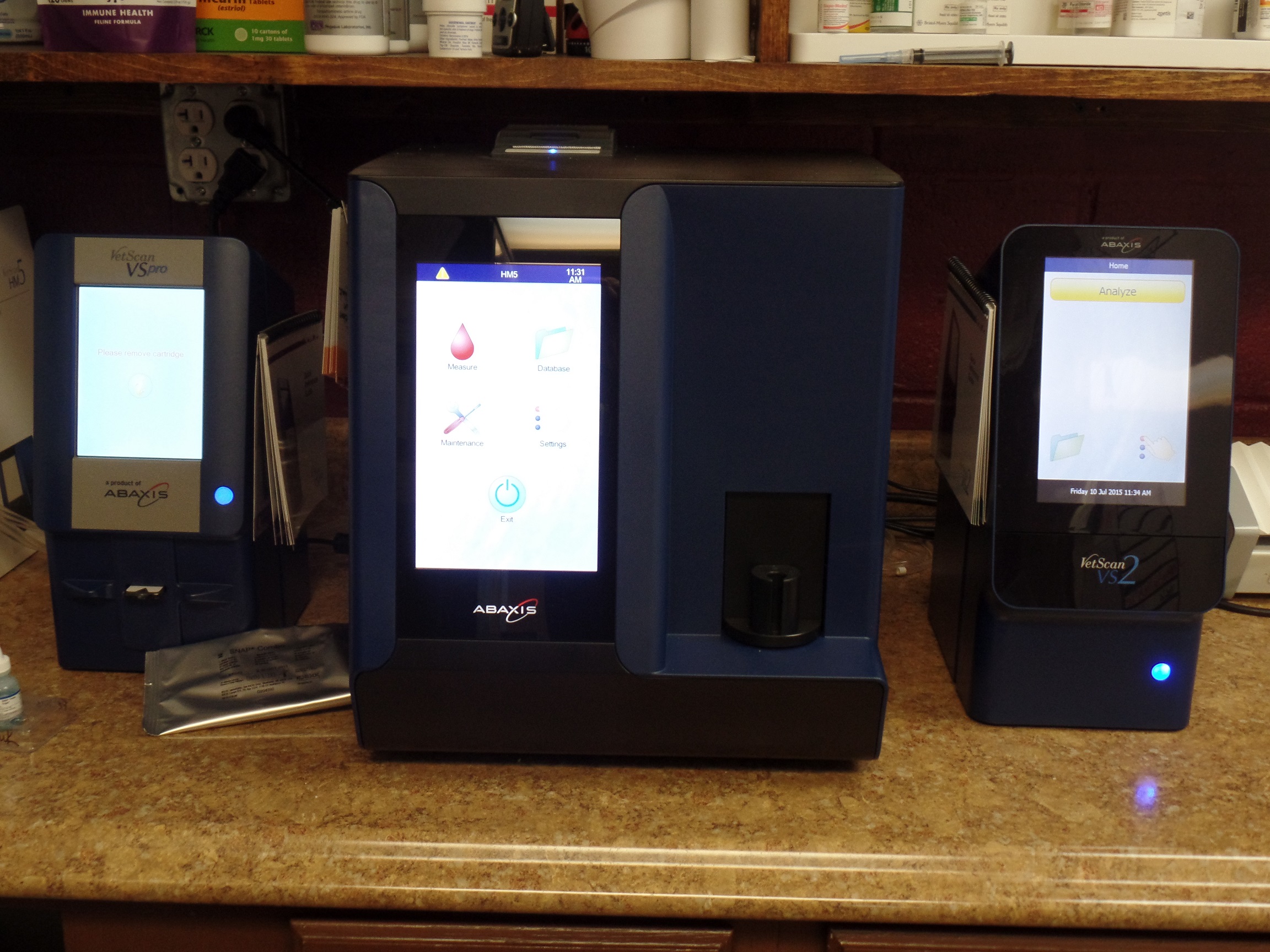 Parvo tests, Feline FIV/Felv screenings, Heartworm screenings, Chemistry profiles, CBC, Thyroid panel (T4 and cholesterol) and PT/PTT.