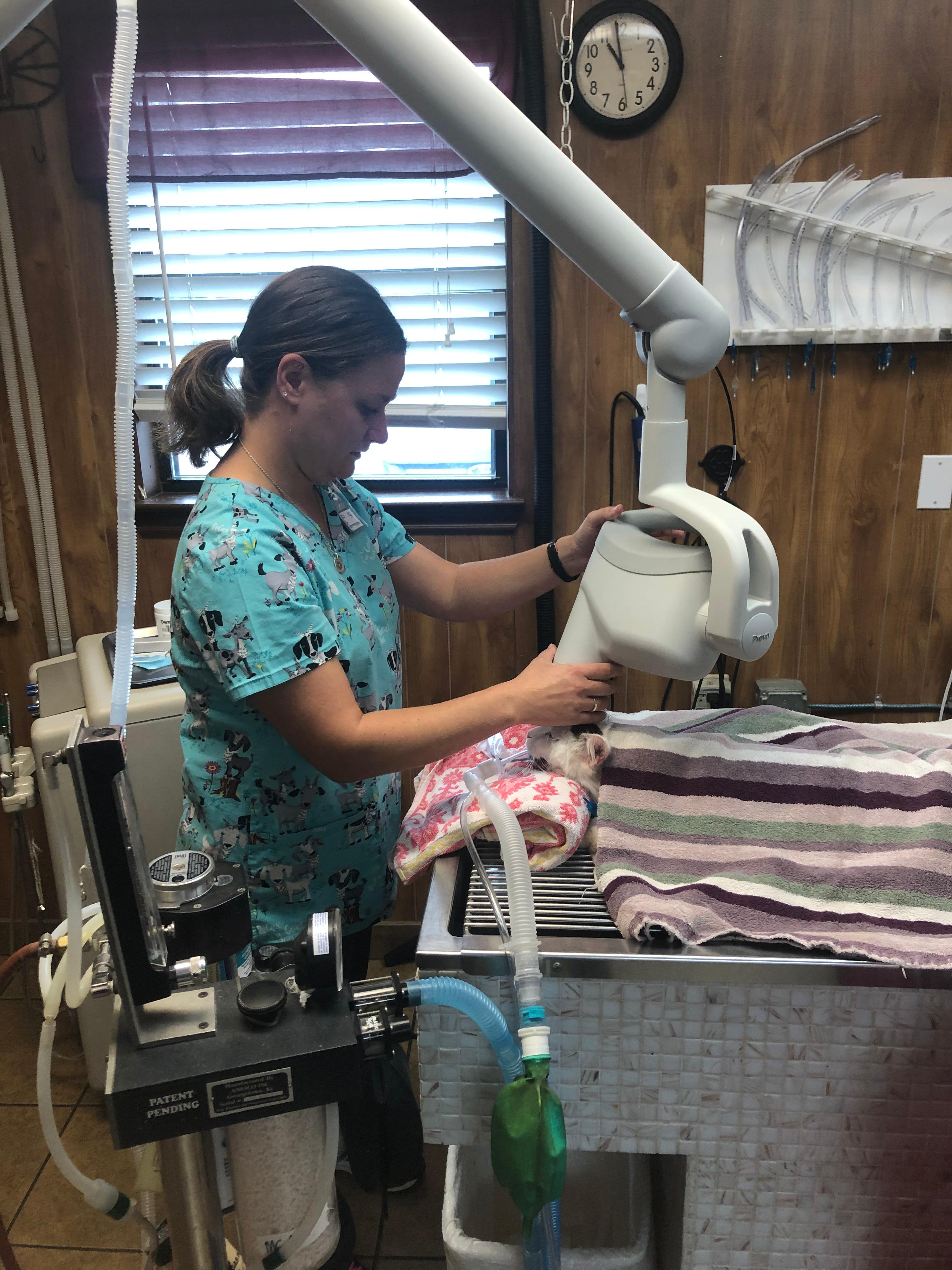 1) They are fast and efficient. With traditional X-rays, an exposure was made and then an actual piece of film was processed with a series of chemicals in order to view the picture. This process was messy and took time. Sometimes the whole process was taken just to find out that the animal’s positioning was suboptimal or the exposure settings inappropriate. With digital films the image literally pops up on a screen near the machine within seconds of taking the X-ray. Minor adjustments can be made with minimal effort, causing much less stress to your pet and our staff.